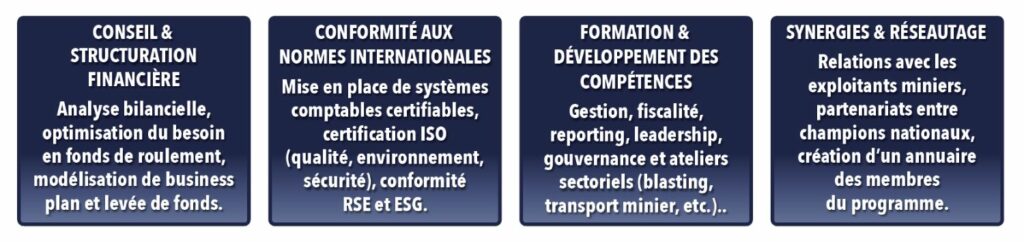 L’accompagnement vise à faire émerger des entreprises solides, capables d’occuper une place reconnue et durable dans la chaîne de valeur minière.